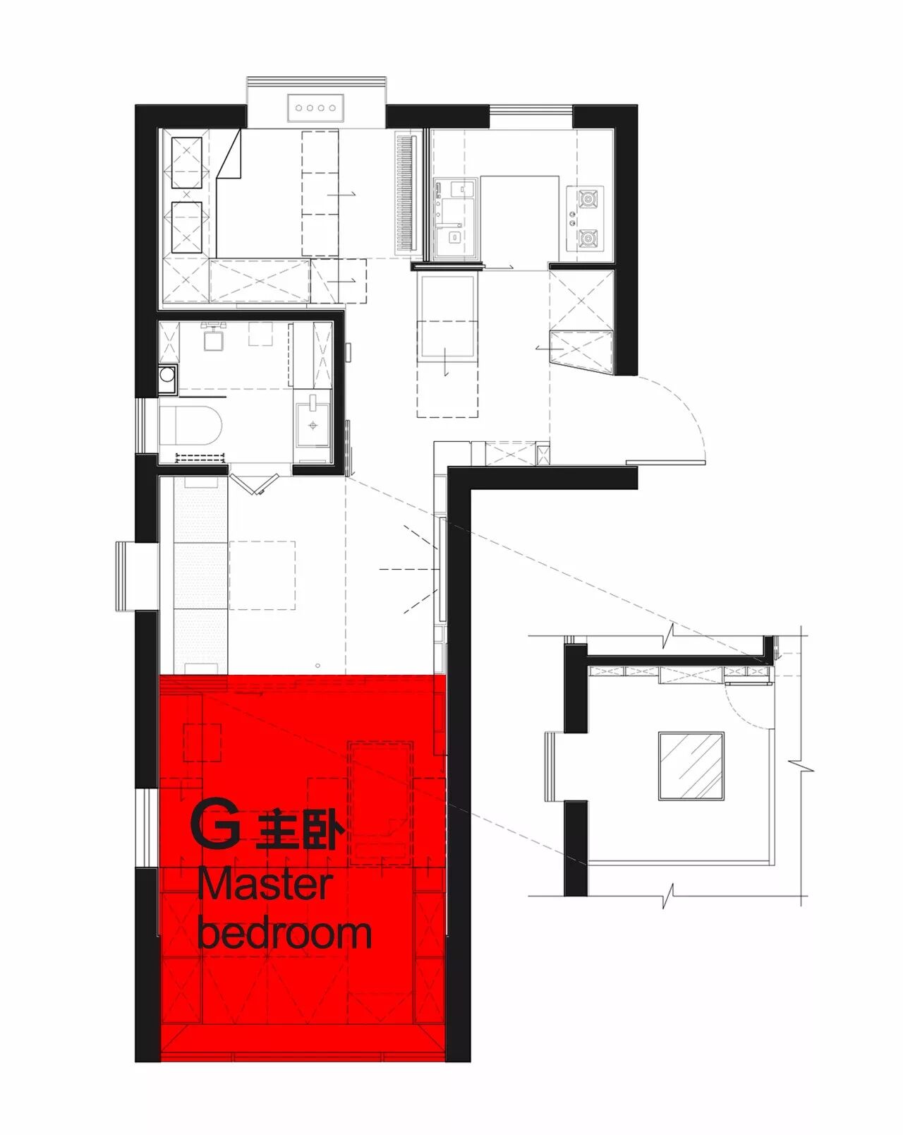 主卧:为了尽可能地争取一些面积,委托人一家在之前就把阳台和卧室的墙打掉了,但是原有阳台的保温、防水实在是惨不忍睹。设计师首先对主卧部分的屋顶、墙体、窗户做了完善的防水保温大改造,确保了室内的居住品质。主卧榻榻米和柜体的设计充分考虑了日常使用的便利程度,常用的放入两边的衣柜,不常用的被子等放入榻榻米中。榻榻米外侧一溜儿的抽屉分别是瑜伽、婴儿床、健身、常用物品和绘画工具,十分方便呢~~