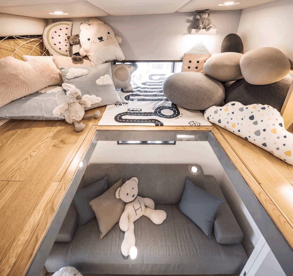 榻榻米中有一块是给米宝特别设计的海洋球玩耍区(小编已经看榻榻米升降桌的套路看吐了),马卡龙色的海洋球+完整的软包垫+合理的尺寸,怪不得两岁的米宝在这里笑的那么开心。小主人给了一个大大大大的好评喔!