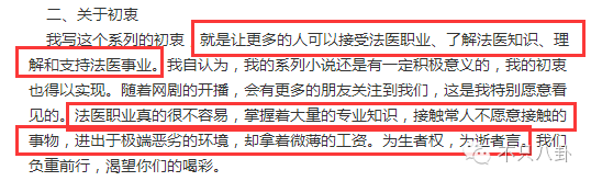 所以,真心希望大家在看《法医秦明》,觉得故事好看的同时,也对法医这个行业有所改观。