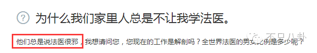 甚至还有人提问说,家里人觉得法医很“邪”,不让我去学。