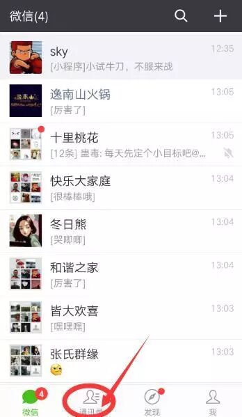 ▼ 在微信首页点击进入“通讯录” ▼