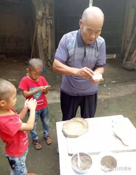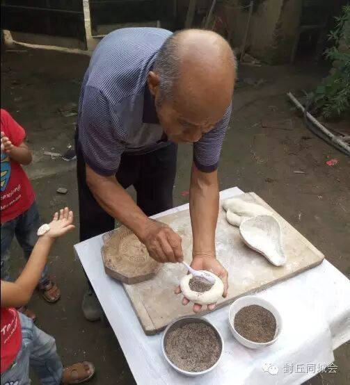制作馅料,爷爷这次做的是非常传统的馅料,芝麻盐咸味和芝麻红糖味。首先把黑芝麻在锅中焙干,然后再案板上碾碎,加入盐或白糖红糖。