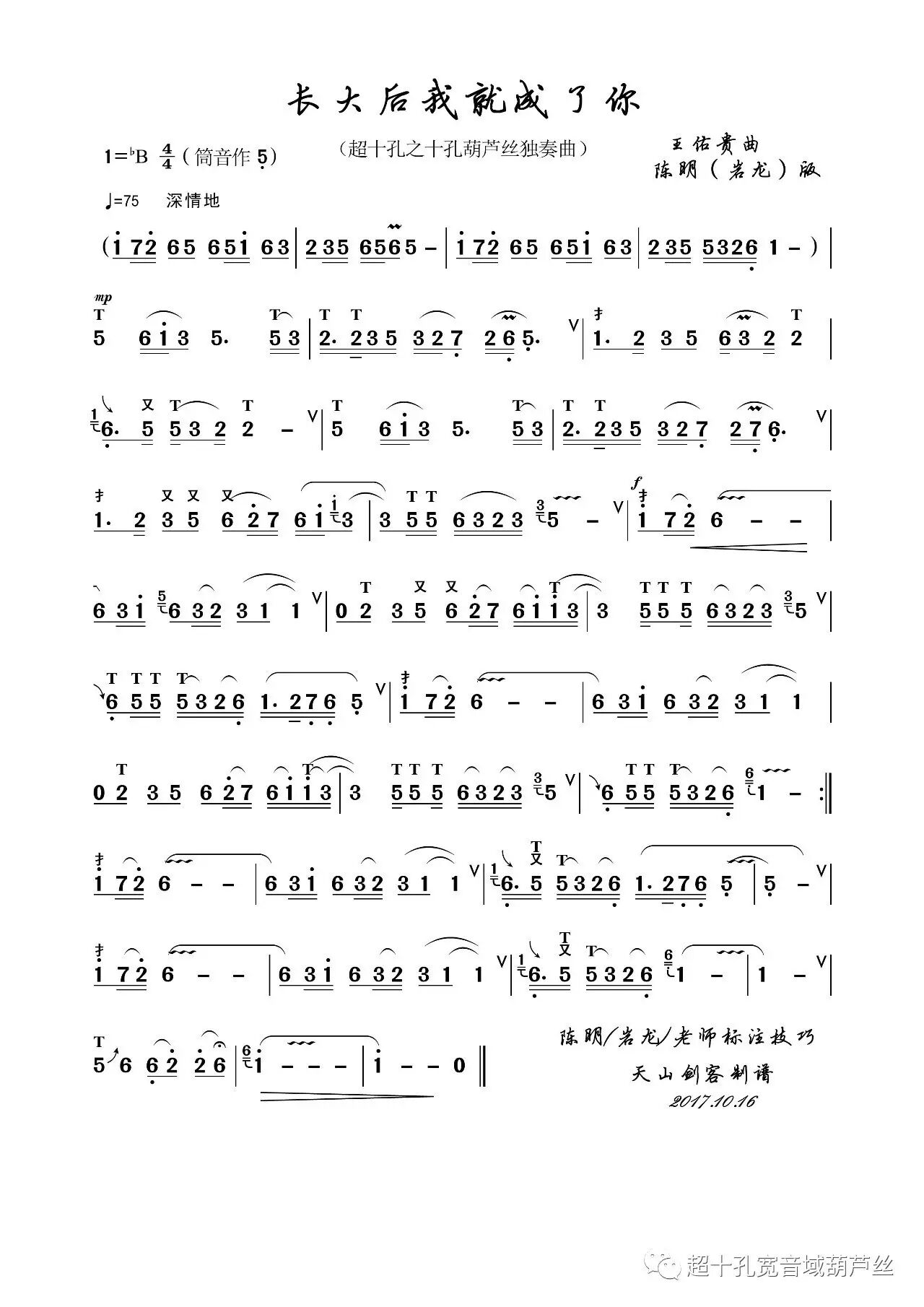 今天,在国庆节来临之际,岩龙老师用十孔葫芦丝重新演绎这首《长大后我就成了你》。葫芦丝独特的音色,仿佛把我们又带回到曾经的求学岁月:无论是未脱稚气、淘气顽皮的小学期间、亦或是青葱朦胧的中学时期,甚至是青春勃发的大学年代,在我们获取知识健康成长的路途上,是教师开启了我们的智慧之门,引领我们正确的方向。
