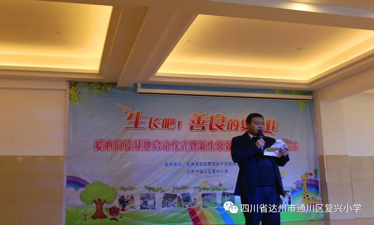 此次活动,我们还有幸邀请到了达州市军区离休退休干部休养所荆晶所长、郑兴林副所长、汪宁主席、以及军区离休退休干部休养所的离休干部。通川区教科局副局长王建波同志。我们深信!有了领导的关心和支持,复兴小学定会高举至善生长的教改大旗,朝着更高的目标前进。