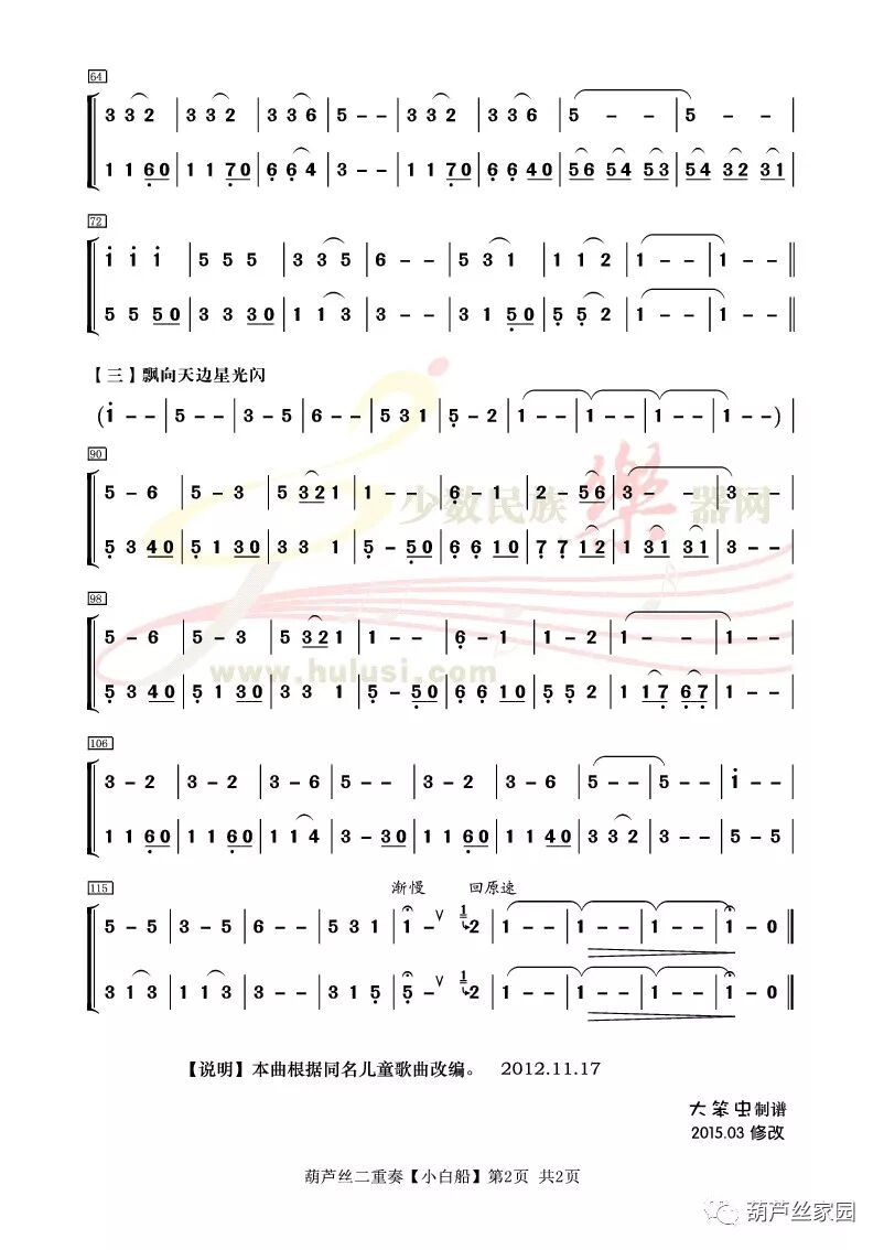 蓝蓝的天空银河里,有只小白船,船上有棵桂花树,白兔在游玩,桨儿桨儿看不见,船上也没帆,飘呀飘呀飘向西天。葫芦丝《小白船》音频