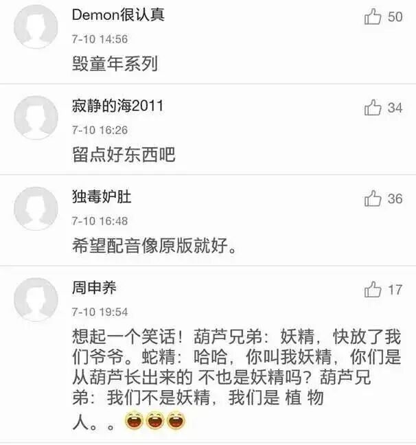 时隔30年:新葫芦兄弟上映了,你期待吗?从1986年诞生到2016年重新启航,这部经典儿童动画已经走过了整整30个年头。不过在此期间,已经有多个版本的葫芦娃被网友玩坏了!来看看新版的葫芦兄弟能否超越经典吧!