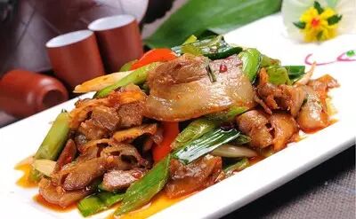 8、回锅肉,旧时四川人家祭,多在初一、十五,煮熟的二刀肉乃是祭品的主角,俗称“刀头”。家祭事毕,正当“刀头”温度适中,后加入蒜苗,郫县豆瓣,甜酱等爆炒,因是将肉煮熟之后再回锅翻炒,便称回锅肉。
