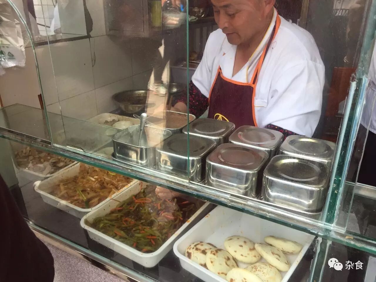 来到成都,锅盔渐演变成三个分支,第一种就是在洞子口张老二凉粉类似肉夹馍的锅盔。锅盔外层没有被封住,先将外层煎烤至酥脆微硬,然后往里面塞馅料,我们三人叫了三种馅料,三丝、耳片(猪耳)、凉粉。