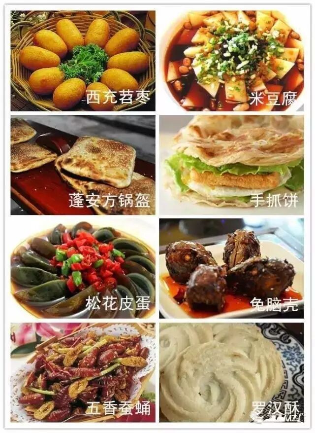 蓬安方锅盔、西充红苕、米豆腐