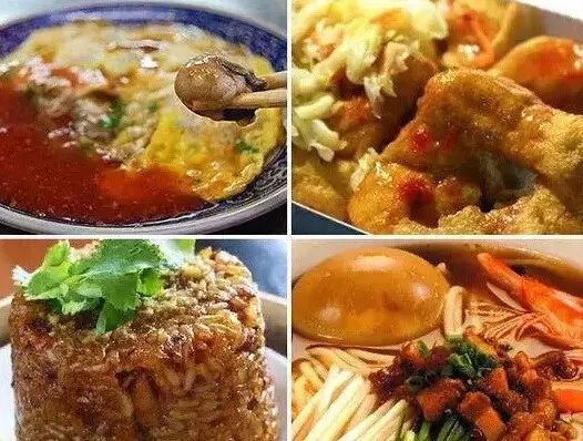 沙茶面、馅饼、海蛎煎、五香、黄则和花生汤、黄胜记肉松店、原巷口鱼丸、叶氏麻糍、面线糊、碗仔糕、土笋冻、鱿鱼须等