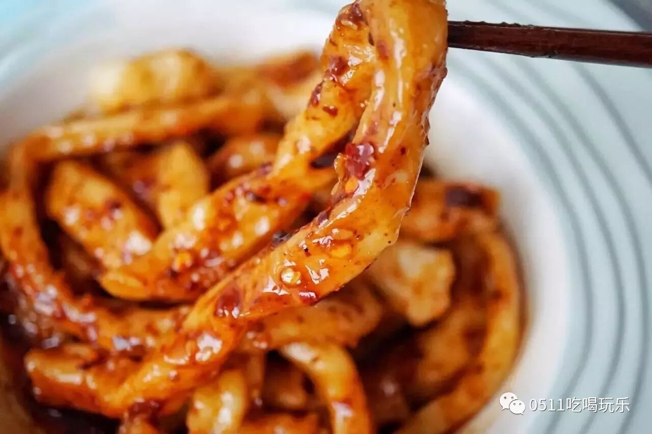 比筷子还粗的面条,吃起来很有嚼头,酱汁鲜甜麻辣,还带微微的酸,特别爽口开胃!
