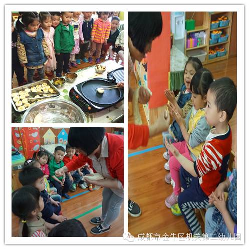 结合国情民情教育月,我班开展了“成都小吃”的主题活动。为了让孩子们更加了解成都小吃,我们开展了“寻找美食”的活动。在活动的统计中发现出孩子们寻找最多的美食是红糖锅盔。针对这一点,我们特意邀请向昱冰妈妈走进课堂,带领孩子们一起做红糖锅盔啦!