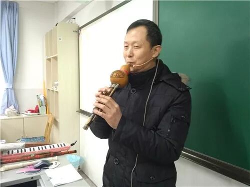 上图:徐众老师用葫芦丝演奏儿童歌曲“我的好妈妈”。