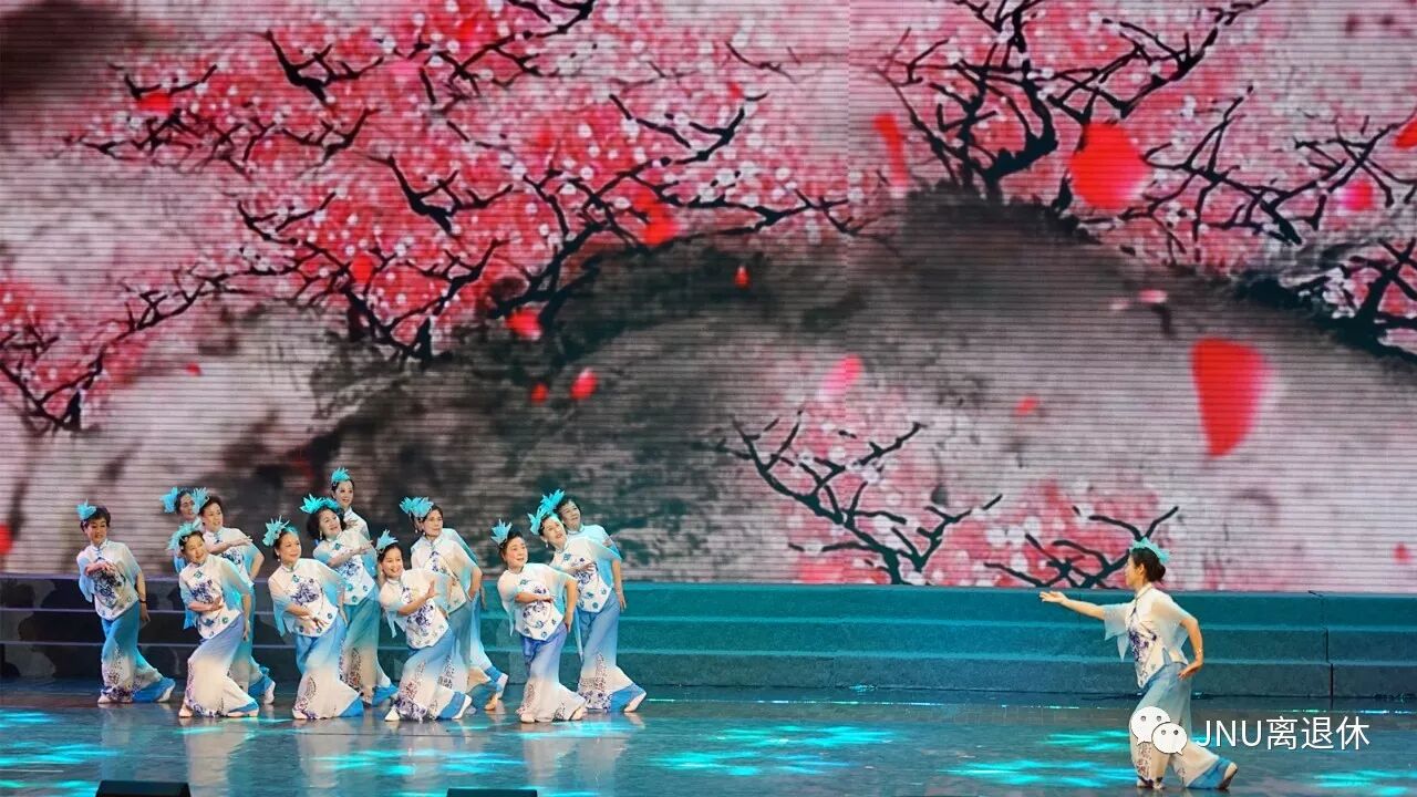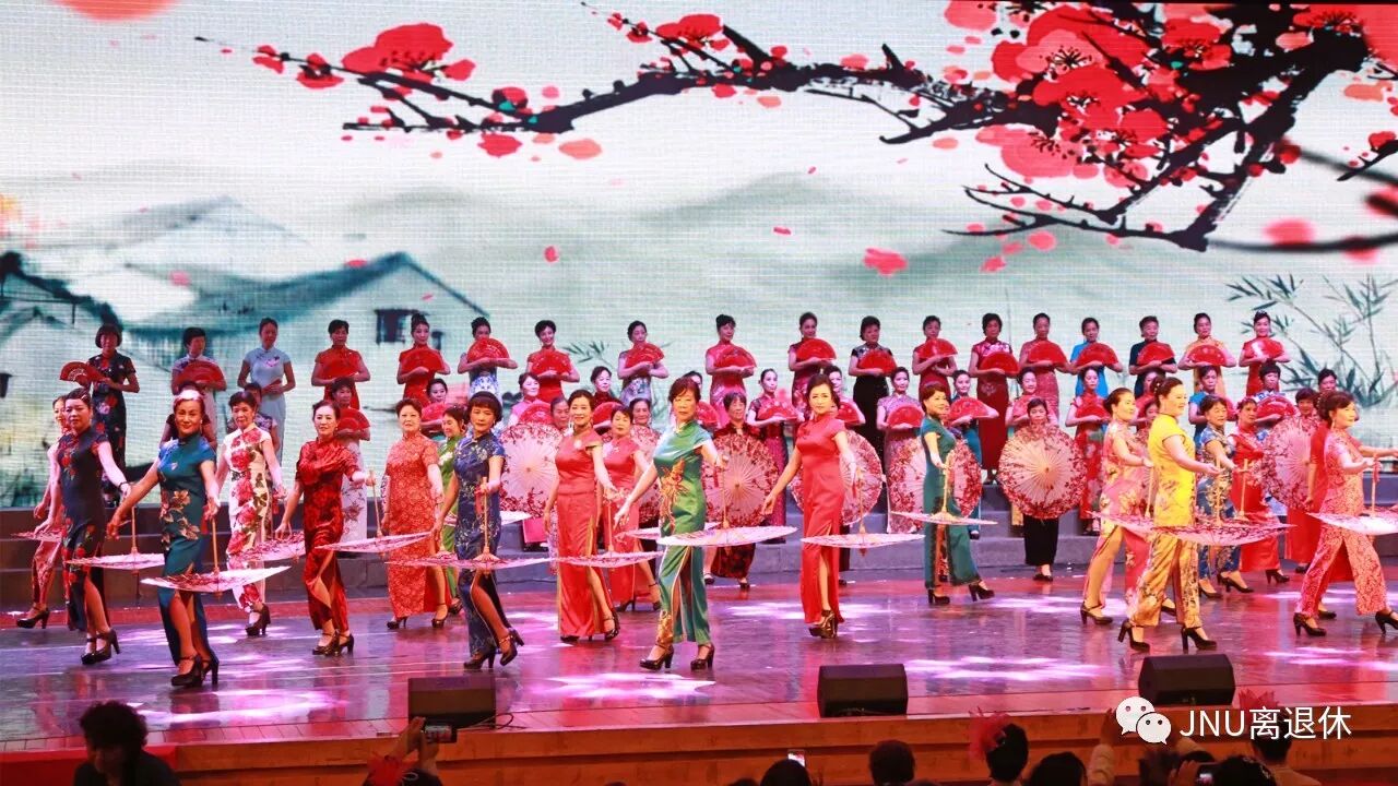 口琴沙龙、二胡沙龙联合演奏的《花儿与少年》、《让我们荡起双桨》唤起了老同志对青春年少时期的美好回忆;因恰逢口琴独奏的李子先教授90大寿,离退休工作处工作人员还特地为他献花祝贺;老年柔力球队也表演了柔力球《甜甜的珠江水》展示了拥有珠江的广州引来全球瞩目。老人进修学院葫芦丝班的任课老师彭超(九孔葫芦丝的发明者)则带领葫芦丝班全体学员表演了著名的傣族乐曲《月光下的凤尾竹》的情景剧;旗袍一班、旗袍二班学员则为大家带来了柔美旗袍舞蹈秀 《西湖春》和《新女人花》,离退休工作处工作人员也和离退休教职工同台配合,表演了男女小组唱《国家》。