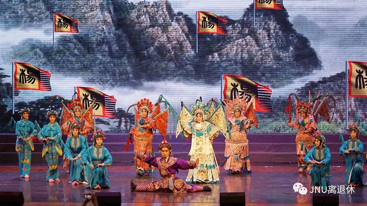 此外,联欢会还特邀省老干部大学国标舞班的学员表演了国标舞《美好时光》,充分展示老人华尔兹技术技巧;南方医科大学离退休工作处的京剧社表演的京剧选段《杨门女将》,则展现了国粹的魅力。最后以“推动新的时代,祖国不会忘记我”的大合唱:《长江之歌》、《祖国不会忘记》结束了表演。精彩纷呈的文艺节目使得整个会场春意盎然,其乐融融。