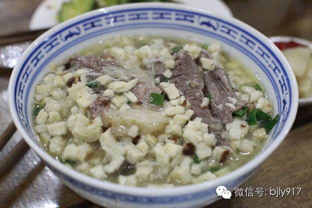 热腾腾的大碗端上来,定睛那么一瞧,仿佛都有点舍不得吃下肚!清亮的泡馍,晶莹的粉丝、油绿的香菜和鲜嫩的牛羊肉,喷香四溢,肉烂汤浓~再附带赠送的一盘特制糖蒜和一小碟辣酱。最美不过如此啦!
