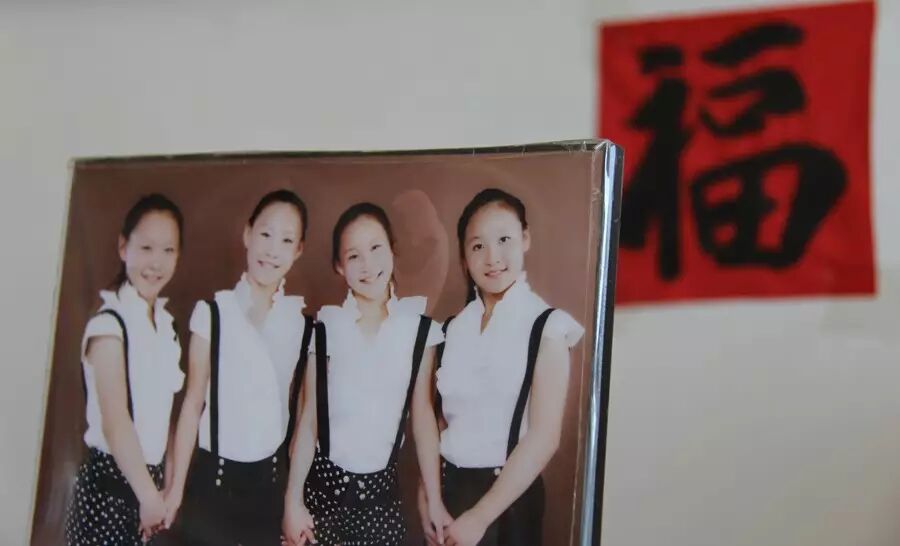 “四凤组合”的家是夏垫镇夏垫村。她们的父亲叫左贺山,母亲叫汪彩霞,都是普普通通的农村人。2000年,经别人介绍两人喜结连理。结婚的第二年,汪彩霞怀孕了。“起初也没感觉跟别人怀孕有什么不一样,就是慢慢的肚子越来越大,但是大的特别快!”汪彩霞说到这,左贺山接过话茬:“可不是嘛,刚怀不到5个月,肚子就跟别人快生了似的,体重都200斤了!”带着疑问,小两口到北京进行了检查。这一查,可把他们吓了一跳,大夫说是四胞胎!“当时吧,也说不好到底是什么感觉,反正有喜有忧。也问过大夫可不可以留一个或两个,可是大夫说,要想留,就只能都留!当时我就想,那就全养了!”左贺山说。由于是四胞胎,羊水太多,刚刚怀了不到7个月就不得不在北京妇产医院进行剖腹产。“刚出生的四个女儿,每个才二斤多一点,从头到脚还没有一个啤酒瓶长呢。”左贺山为四个女儿起乳名“大凤二凤三凤四凤”。
