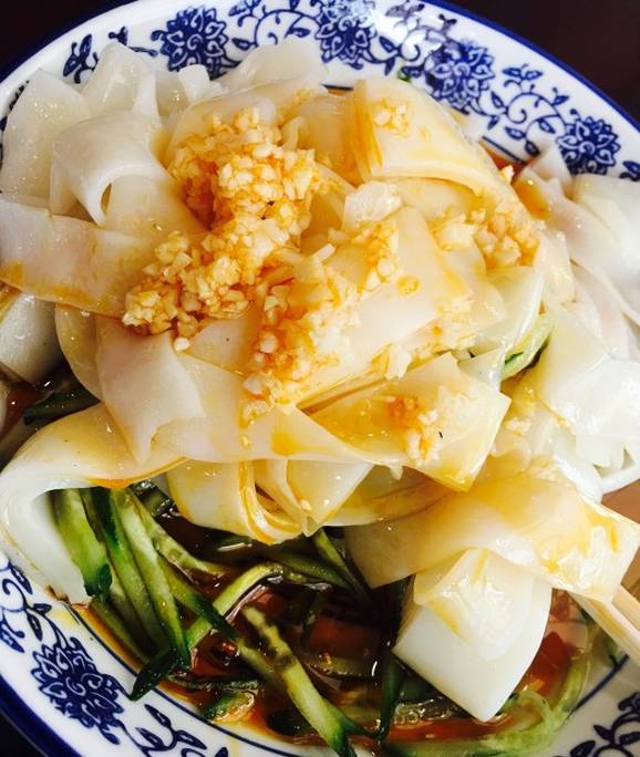 每天中午都排队,确实很好吃,料给的很足,可以选择酸甜的也可以选择咸口的,黄瓜和面筋给的也很多,一个人吃不了。他家黄瓜特新鲜,现切,面皮口感特别滑,不是有些地方吃起来面面的,味道都偏酸点,很刺激舌尖,吃起来很舒服,他家一定要早去,饭口都容易排队一个小时!