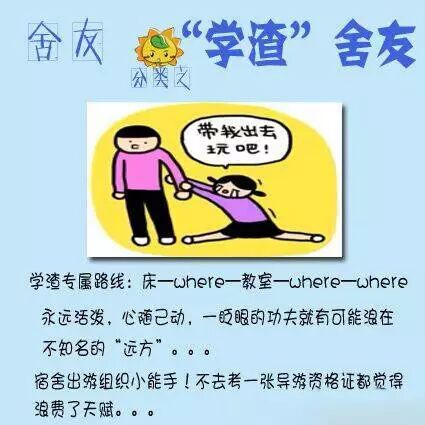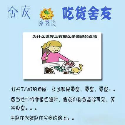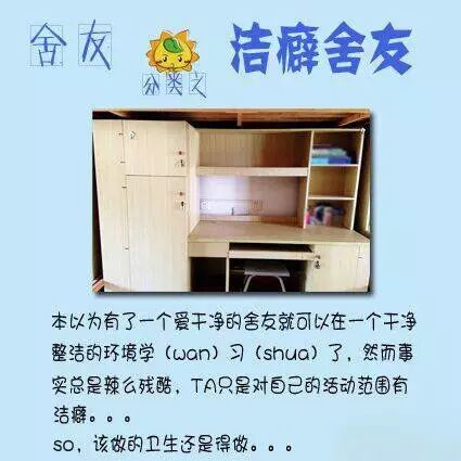 下面是舍友的各种类型,自己快对号入座你们的舍友吧~