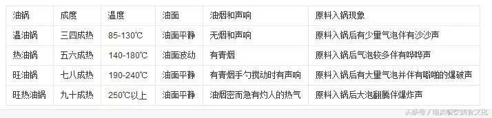 这里只是给您个资料作为参考,烹饪的次数多了,有些经验后,就可以估计个大概了。但别把烹饪当做实验,一旦烹饪每次都用上了温度计,那您就太辛苦了,就没了烹饪的乐趣了。