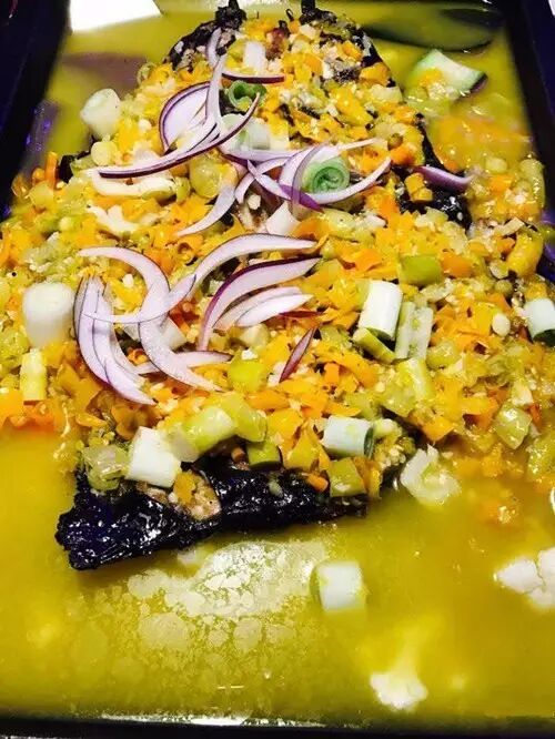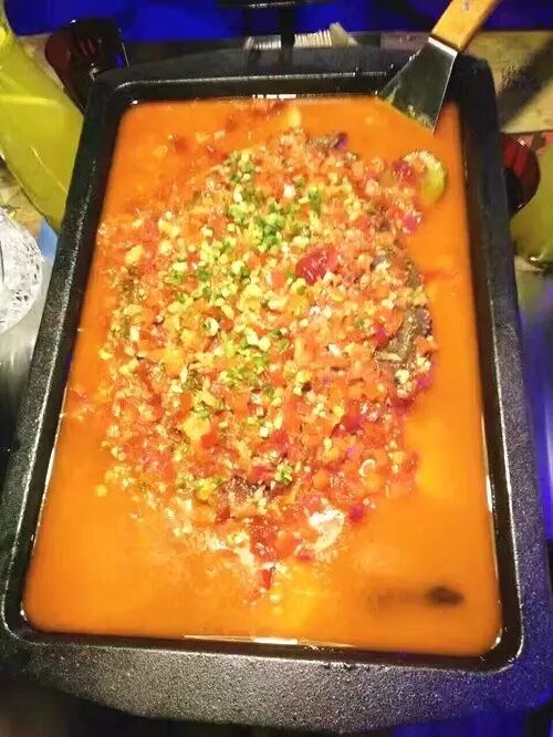 鱼肉上堆积的红辣椒,如同美女的外衣一般挑逗着食客的眼。加上鲜香的味道,让人恨不得立即将辣椒扒开,将鲜嫩的鱼肉尽数吃尽。