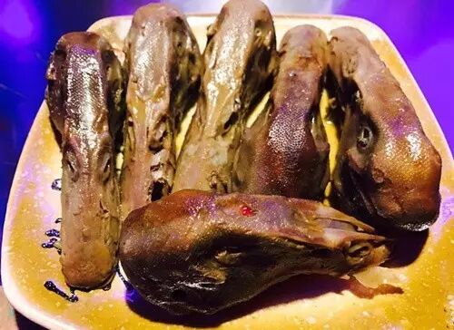 鸭脑壳在滋味丰富的酱汁里卤制后,具有香、辣、甘、麻、咸、 酥、绵等特点,不但口感鲜美,回味无穷,还具有益气补虚、降血脂以及养颜美容等功效。