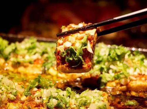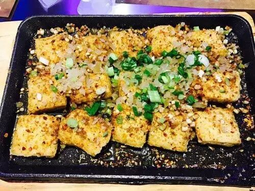 包浆豆腐外酥里嫩,两面金黄,加上辣椒面,花椒面等调味料,油锅里香味和滋滋声诱惑着舌尖,一口下去,细嫩的豆腐和酥脆的表皮混合,层次丰富,味道鲜美。