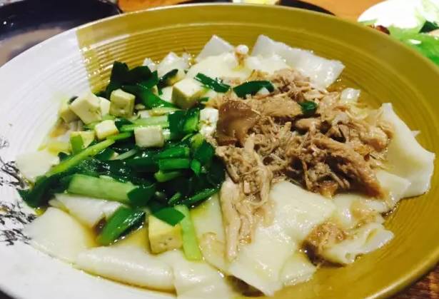 推荐理由:吴彦祖最爱的陕西味儿,腊汁肉与鲜韭菜的浓香搭配让人回味无穷!得说吃起来比看起来好多了,面片比较薄但是一点也不软烂,拌着韭菜豆腐腊汁肉非常清爽。和酸酸的调汁搭起来很合适。豆腐丁就是嫩白的水豆腐。默认端上来没放辣子,桌子上可以自己放。