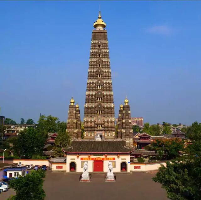 天彭街道办是彭州市政府所在地,、商贸、文化中心和交通枢纽。来到这里,就不得不去那座伫立在北大街的龙兴寺。