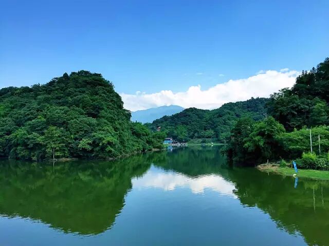 莲花湖一直是彭州人心中的“桂林山水”,两岸青山在平静的湖面投下水墨般的倒影,游客乘着缓缓划过的小船,欣赏四周风景,仿佛“人在画中游”。