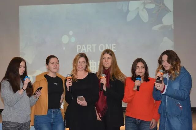 王力浩学长进行现场教学并演唱《苏三起解》。旦角的云手、武生的起霸,留学生们有模有样的跟着台上的老师学习这些京剧手势。此刻,京剧是我们共同的语言。