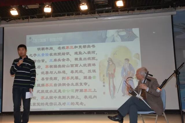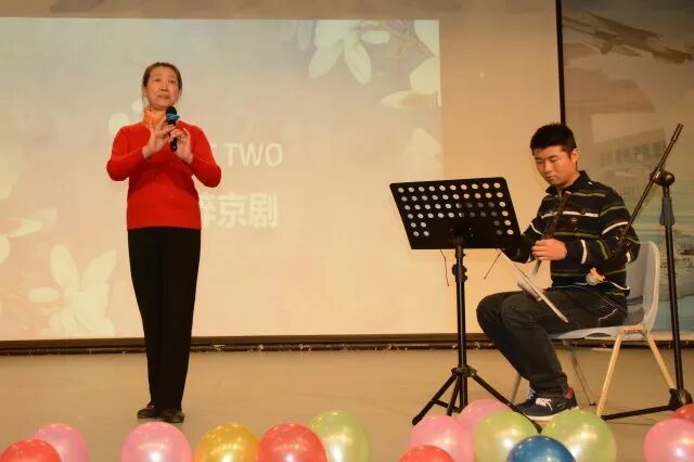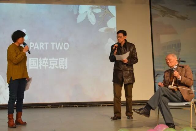 让在场学生感动的是92岁的退休老教师刘盛武老师为大家带来的最真切的传统文化展示—板胡。他分享到,京剧使他快乐,使他健康,而他也希望京剧带来的这种快乐能够让更多人感受到,老爷爷还用英语为留学生介绍起了京胡,流利的英语口语和丰富的知识让在场的中外学生大为称赞和敬佩。