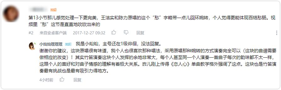 同时,就像B站的粉丝反馈的一样,每个人对曲子的理解不同,处理方式也就千差万别,吹奏出的韵味也会各有千秋。