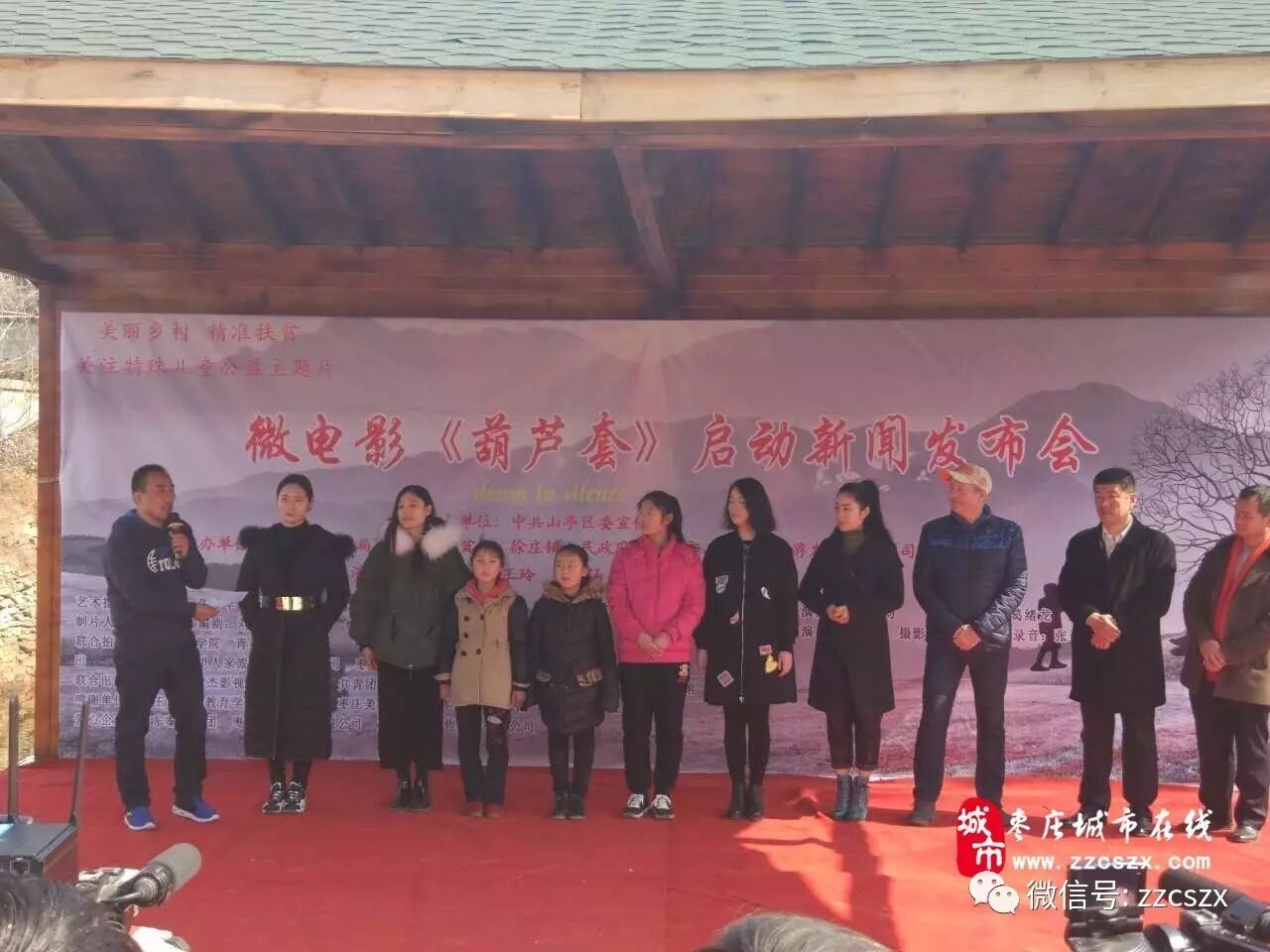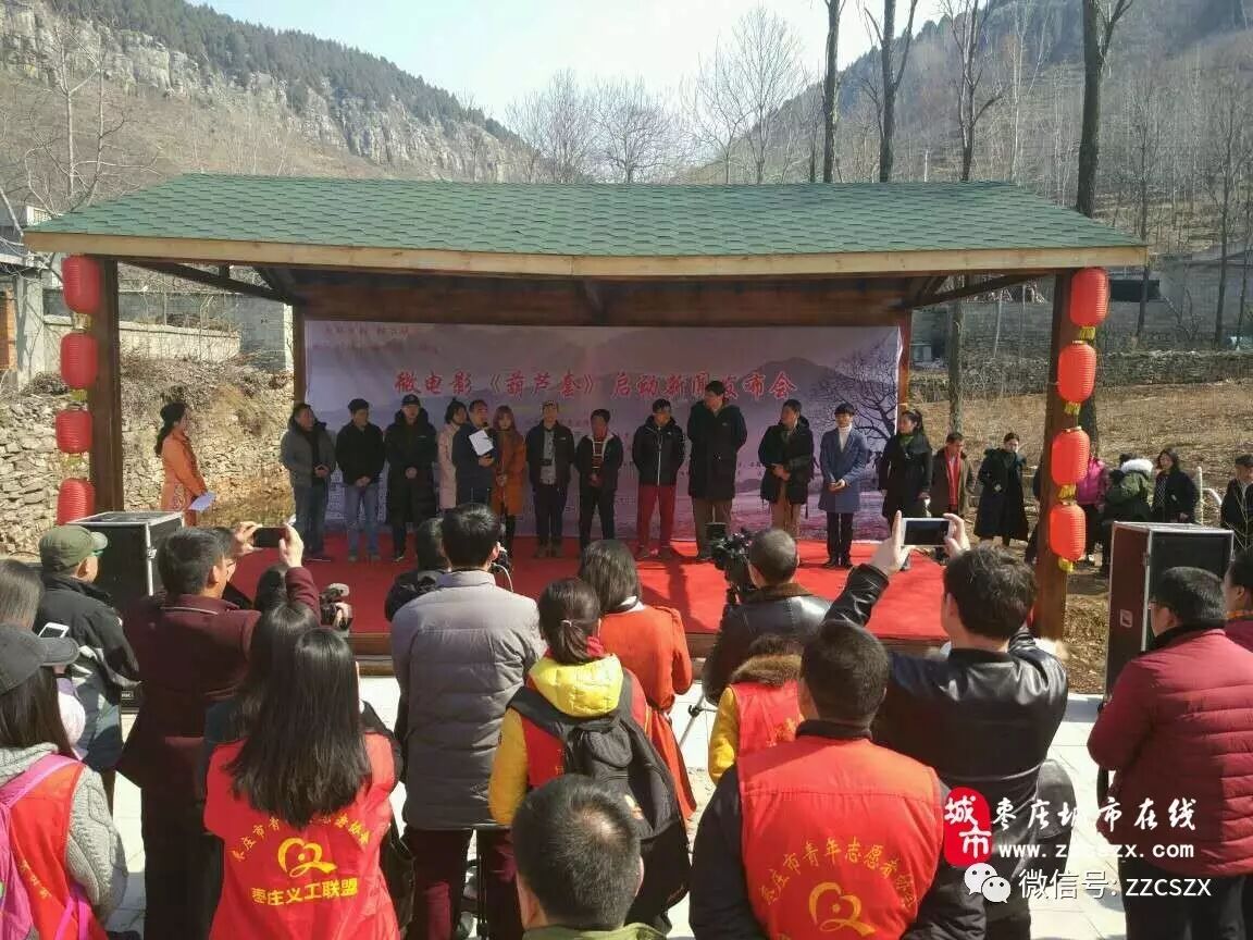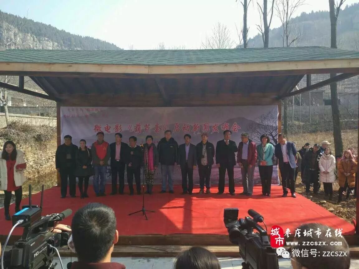2月25日,微电影《葫芦套》开拍新闻发布会暨开机仪式,在山亭区徐庄镇葫芦套村举行。八一电影制片厂著名导演、微电影《葫芦套》艺术指导赵继烈,著名导演、微电影《葫芦套》电影监制马会雷,电影学院教授、微电影《葫芦套》指导徐波教授,枣庄宣传部副部长褚福干,山亭区委常委、宣传部部长彭庆辉,山亭区委宣传部常务副部长韩平,山亭区委办公室副主任、精准扶贫工作组组长李奉华,山亭区旅服局局长永平,徐庄镇人民政府镇长刘超,枣庄特殊教育学校副校长徐景卫,枣庄义工联盟总会长汲春峰,微电影《葫芦套》主创人员、、省市各级新闻媒体等社会各界人士出席了仪式。