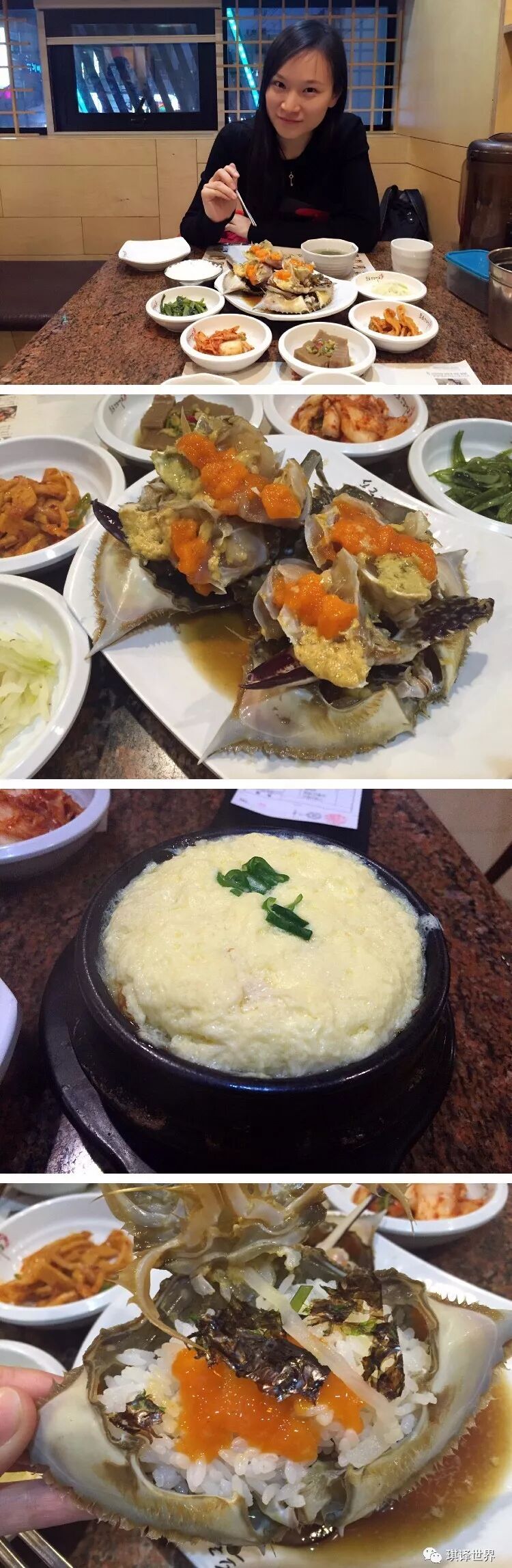 酱蟹的味道本身有点偏咸,需要就着米饭吃,我和CC因为下午吃得比较多,只点了一个单人套餐,56000韩币,优惠券加送了一个蒸水蛋,虽然比之前吃的东西略贵些,但物超所值,非常值得一试。