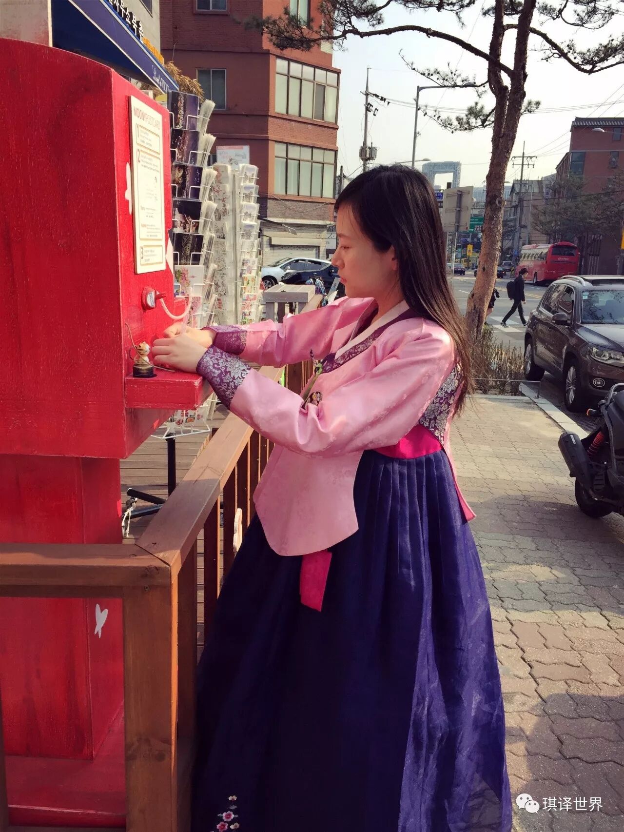 * 南山谷韩屋村,就在首尔塔脚下,也离我们的酒店很近,步行5分钟就到了,正巧看到一个美女在拍艺术照,征得她同意摆拍了一张,如果不是背后那个现代建筑,整个意境应该更美。