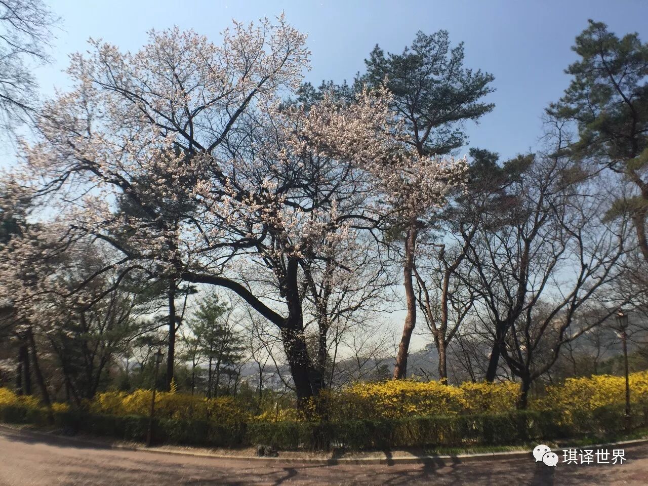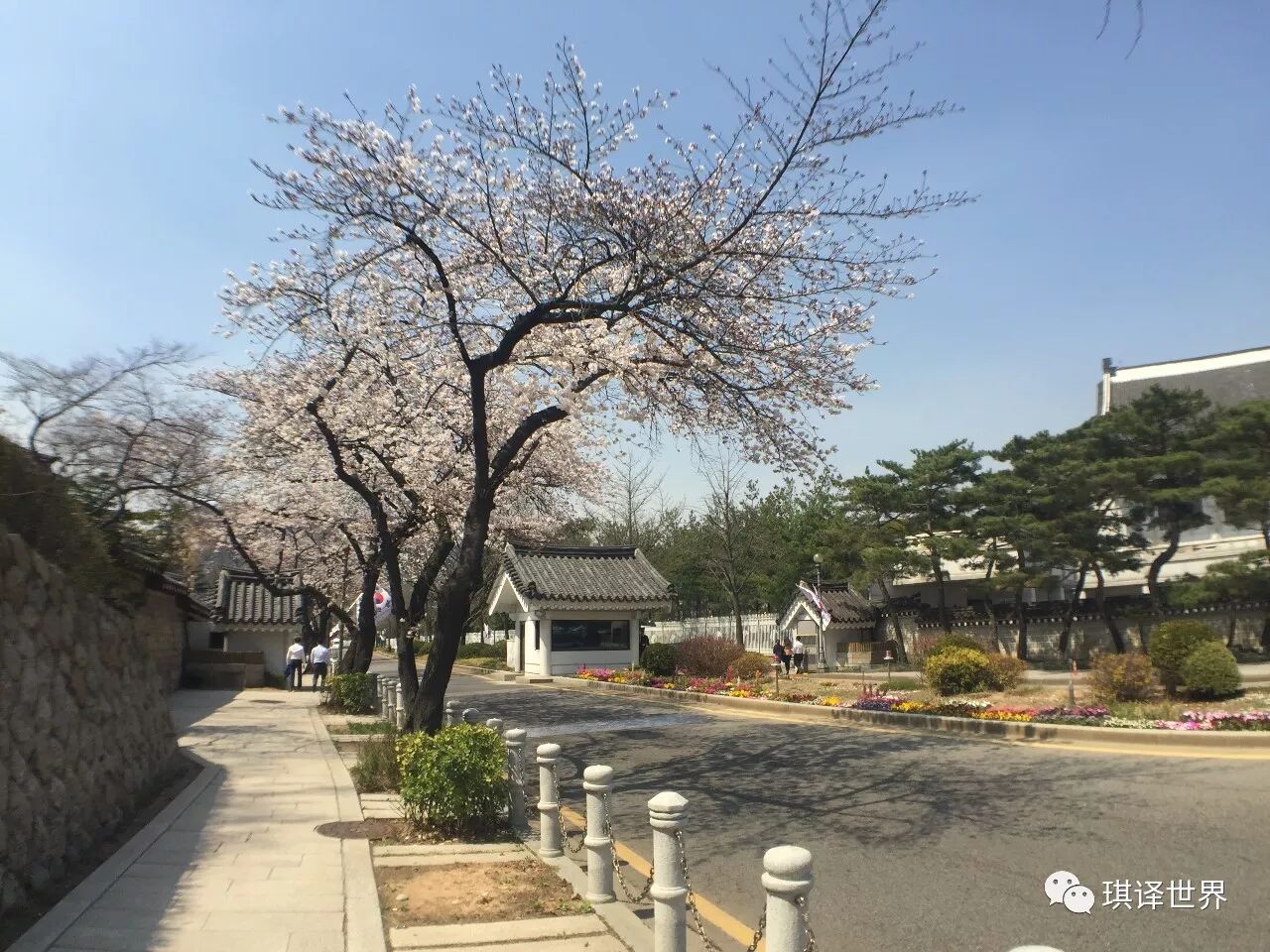 * 青瓦台外围,放晴后的樱花开得更加娇艳,其实在樱花季,不必特意前往汝矣岛,市区内处处是风景。
