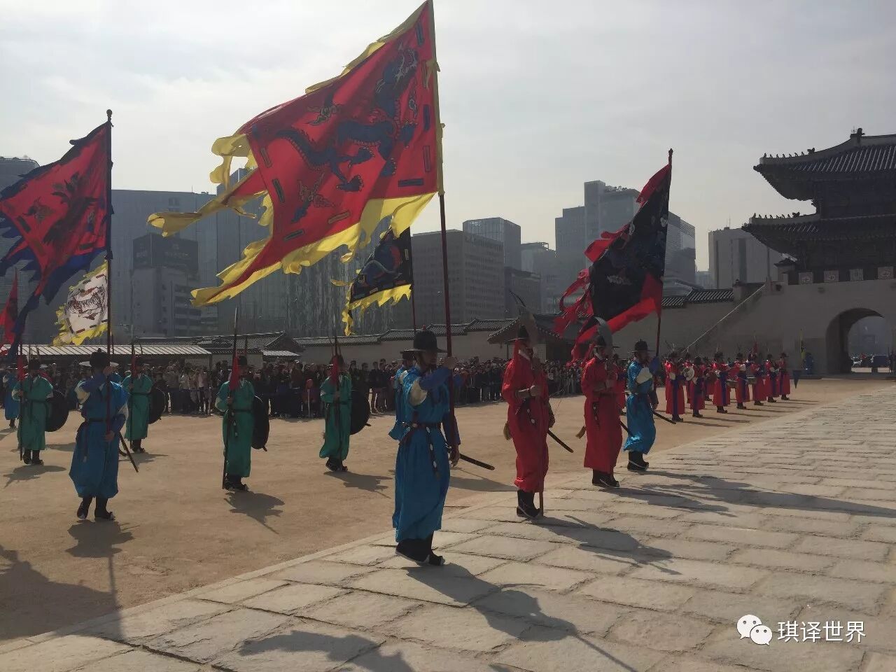* 景福宫,就是以前的皇宫,门票3000韩元,周二不对外开放,每天在光化门外会有两次换岗仪式表演,我们就是来到此一游的。