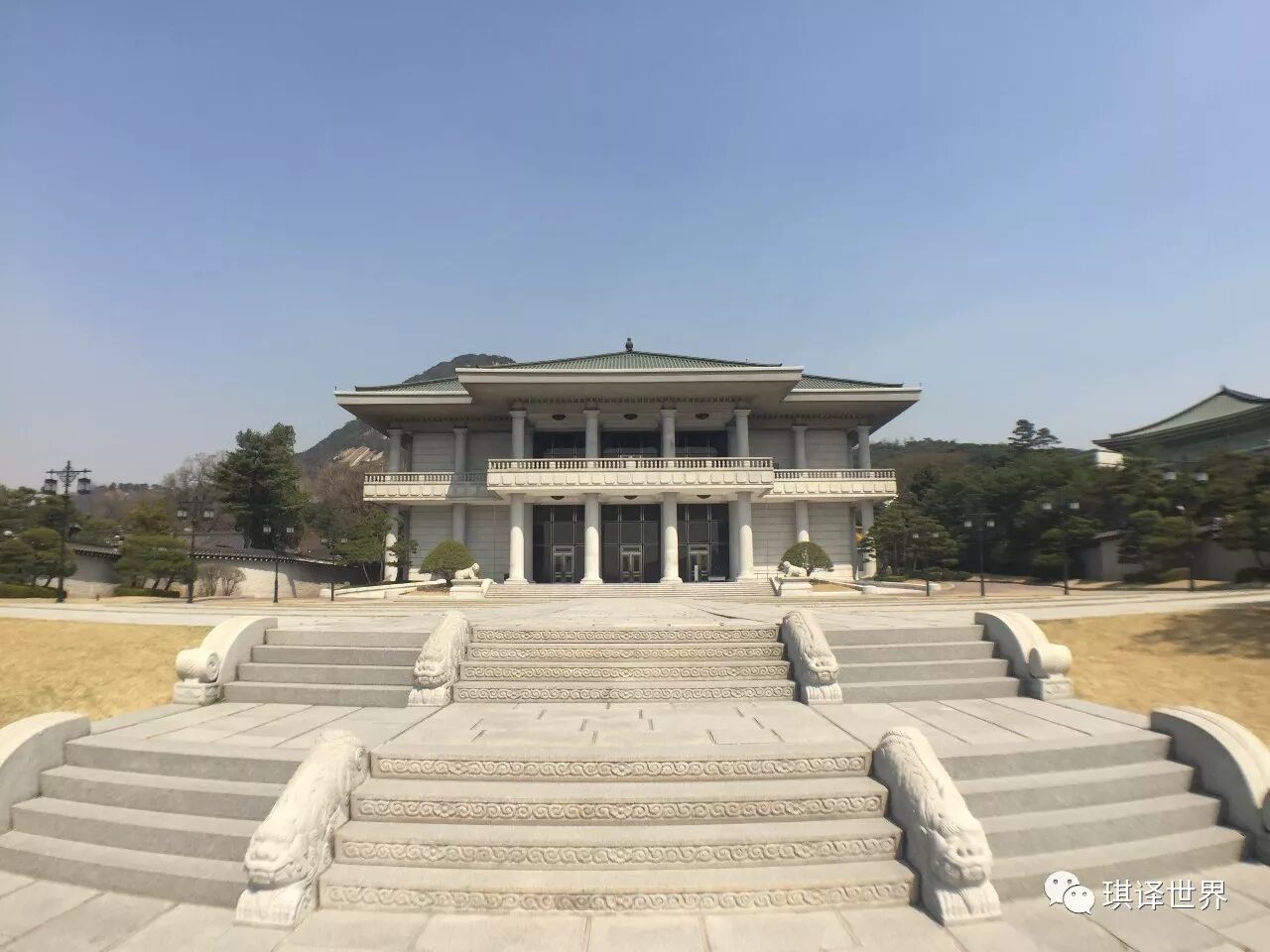 坐着VIP大巴进入青瓦台,本以为这位帅气的欧巴是全程陪同,结果只是送我们到门口