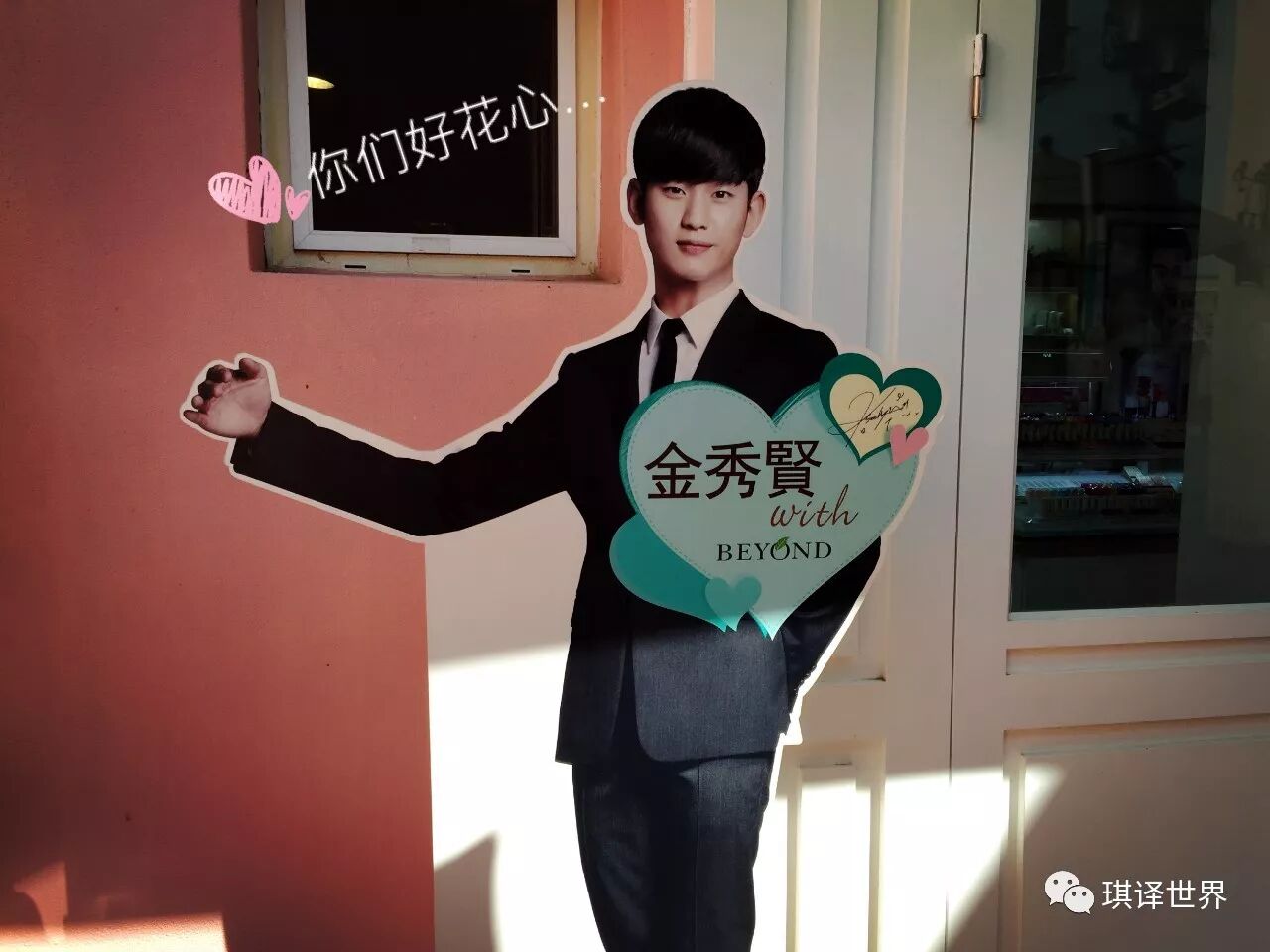 可怜的都敏俊西,太阳的后裔把星星给摘走了,据说这个展板之前都是排队合影的![]()