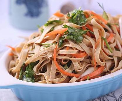 干豆腐300克;胡萝卜50克;香菜20克;葱20克;大蒜3瓣;