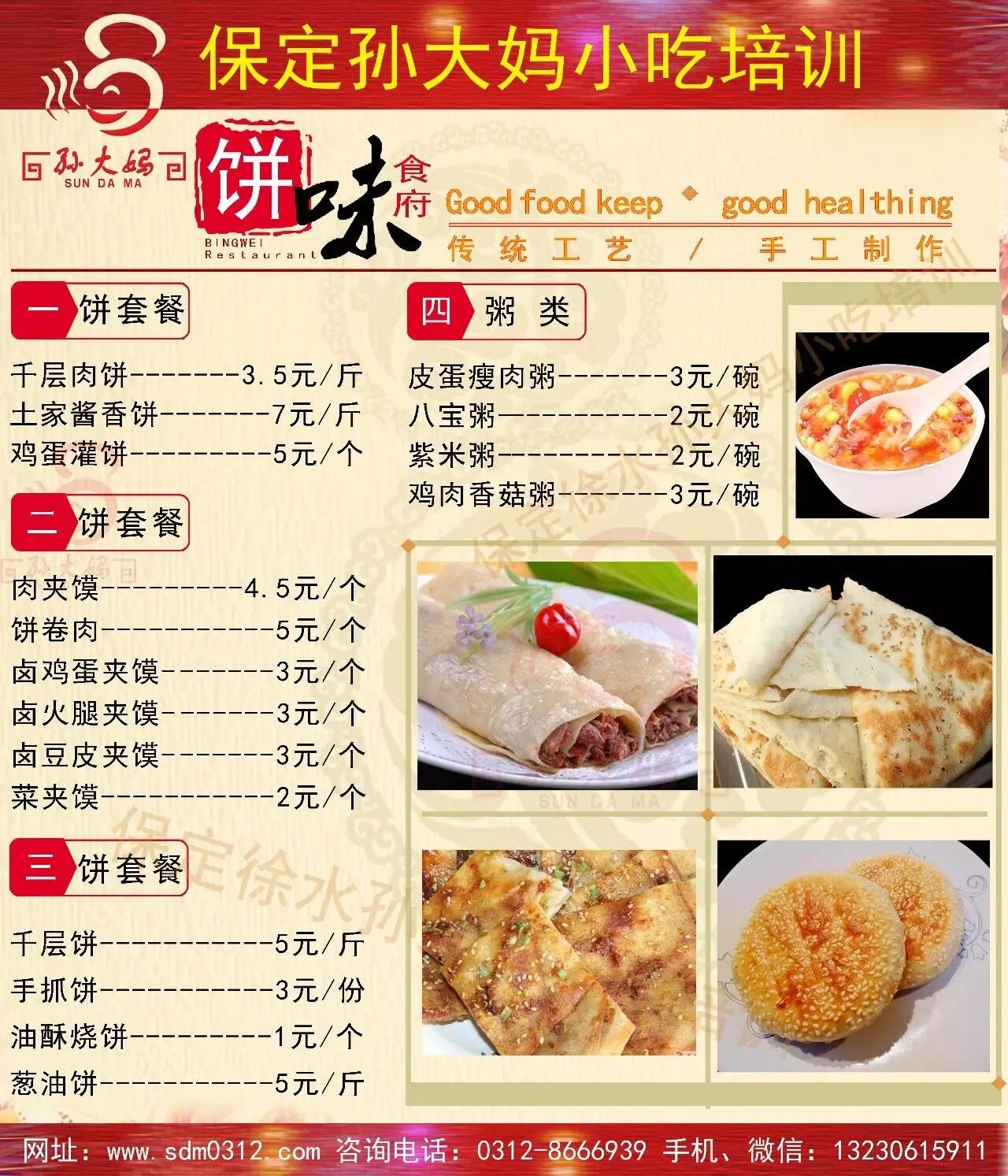 保定孙大妈小吃培训常年培训无矾酥油条,杂粮油条,重庆小面,豆腐脑,山东杂粮煎饼果子,烤面筋,烧烤,麻辣烫,锅盔,凉皮,凉面,凉拌菜,米线,拉面,板面,饸饹面,炒面,香辣面,烩面,刀削面,担担面,臊子面,手擀面,砂锅面,热干面,黄焖鸡米饭,鸡汁豆腐,钵钵鸡,凉粉,油酥烧饼,麻芝烧饼,烤炉烧饼,酱香饼,千层饼,手抓饼,掉渣饼,几十种大饼烧饼,火烧,里脊扒饼,饼卷肉,肉夹馍,馄钝,胡辣汤,鸡蛋灌饼,水煎包,蒸功夫包子,水晶饺,灌汤包,土豆粉,酸辣粉,麻辣香锅,多种火锅,啤酒鸭,红焖羊肉,火锅鸡,火锅鱼,羊汤,酥鱼,蜀王砂锅,卤煮鸡,道口烧鸡,煮下水,绝味鸭脖,炸鸡柳,炸鱼虾,甏肉干饭,重庆鸡公煲,酱大骨,荷叶饼,擀面皮,灌肠,油炸臭豆腐,多种砂锅系列等400多种小吃,学三赠四,免费住宿,材料免费,欢迎考察。学不会全额退款。电话:0312-8666939手机:13230615911QQ:2948537092 微信:13230615911 地址:保定徐水区晨阳大街高庄路口北行50米