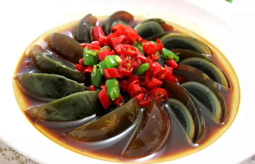松花皮蛋,选用当地土鸭蛋、松柏树炭灰、大碱、食盐、茶水等原料加工而成,色泽晶莹剔透,蛋清上松花栩栩如生,食之香脆可口,回味悠长,是地历史悠久,享誉盛名的特色食品之一。