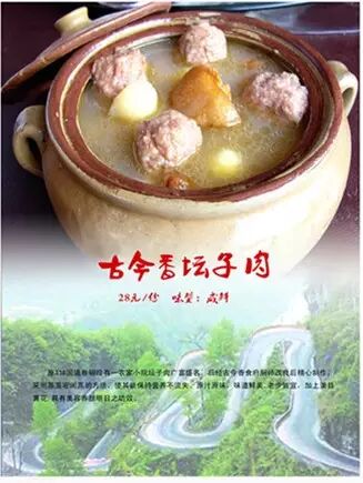 走了一天累忙啦,回渠县古今香点个坛子肉,心情一哈就愉快拉。