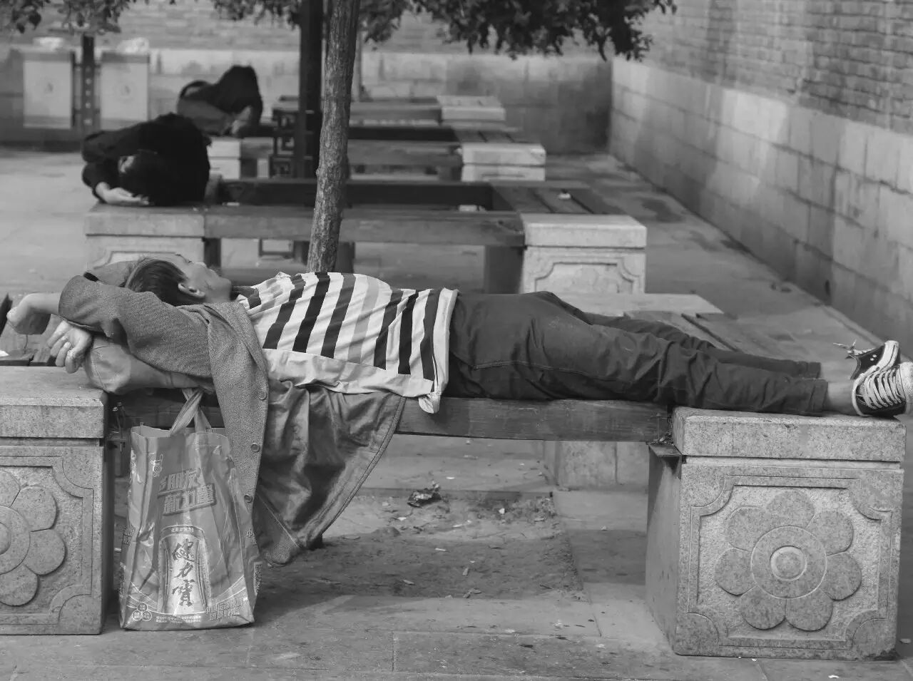 古迹景点附近休息的人。不知怎么,总觉得没有古迹里面休息的猫优雅。