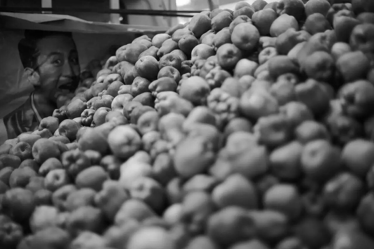 街上大车拉着卖的蛇果。