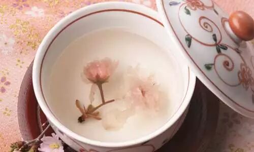 腌渍樱花可当腌制菜物佐白饭,也可泡做樱花茶,用滚水泡开的盐渍樱花,颜色褪去,变得透明,却赫然绽放,制作好的樱花花蜜,越存越香,味道浓郁而不散,食用时,用小勺挖出,佐粥,糕点,汤圆等皆可。