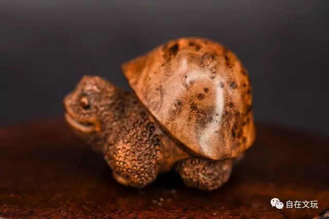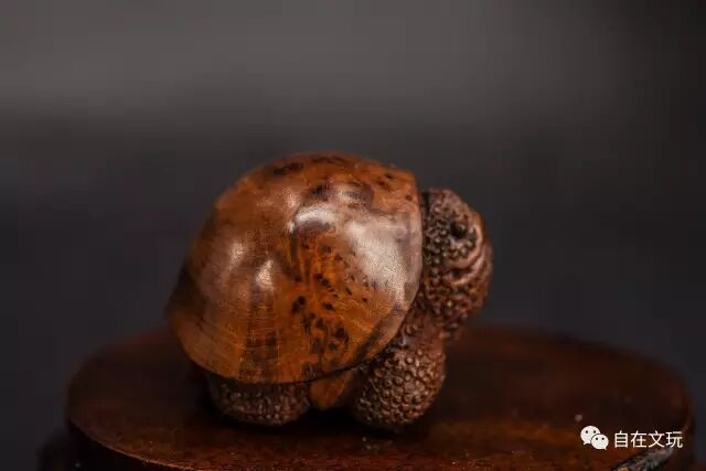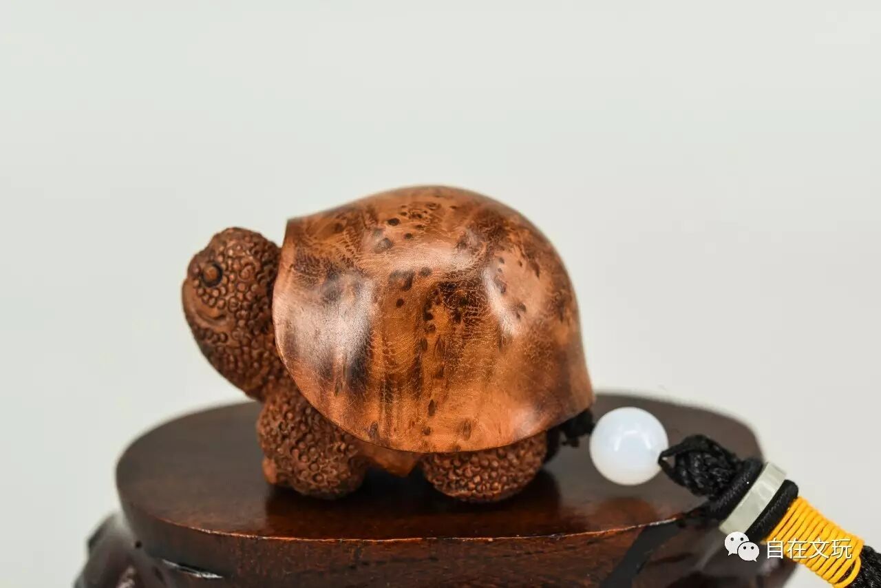 因为一两百块钱能买到纯手工雕刻的东西实在不容易,大家都知道麻梨疙瘩是北方特别著名的材质,有北方黄花梨之称,花纹绚丽,油性密度超高,天然瘤花,雕刻师傅就是用它独特的瘤花来创作的这款将军龟。