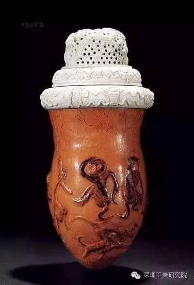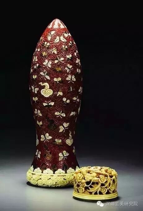 清 匏制剔漆镶嵌海水百蝶葫芦