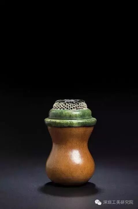 清光绪 葫芦雕开光山水纹蝈蝈罐